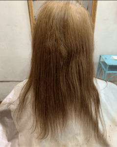 アルカリカラーの繰り返しと、カットによる過剰なスキ、